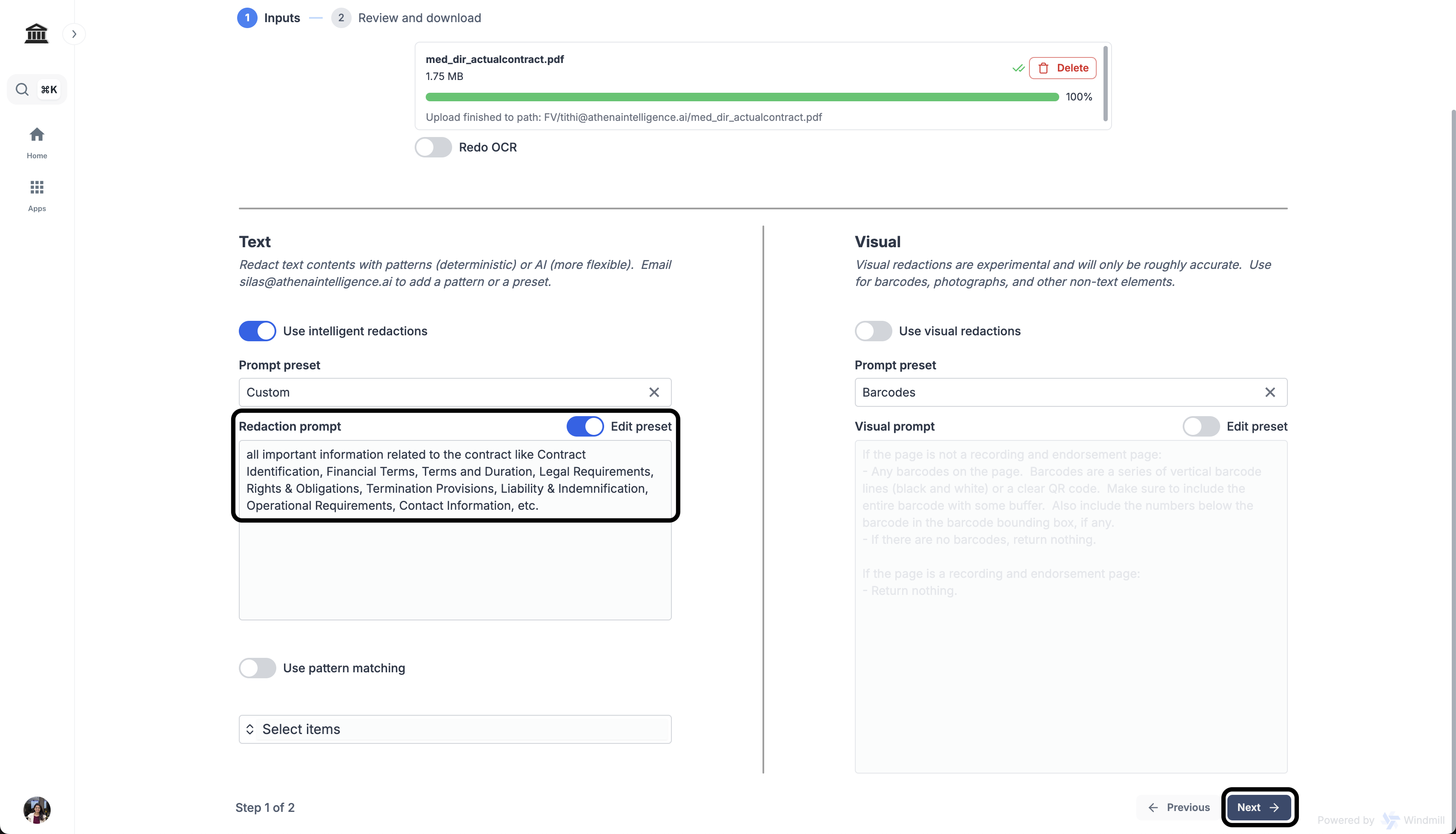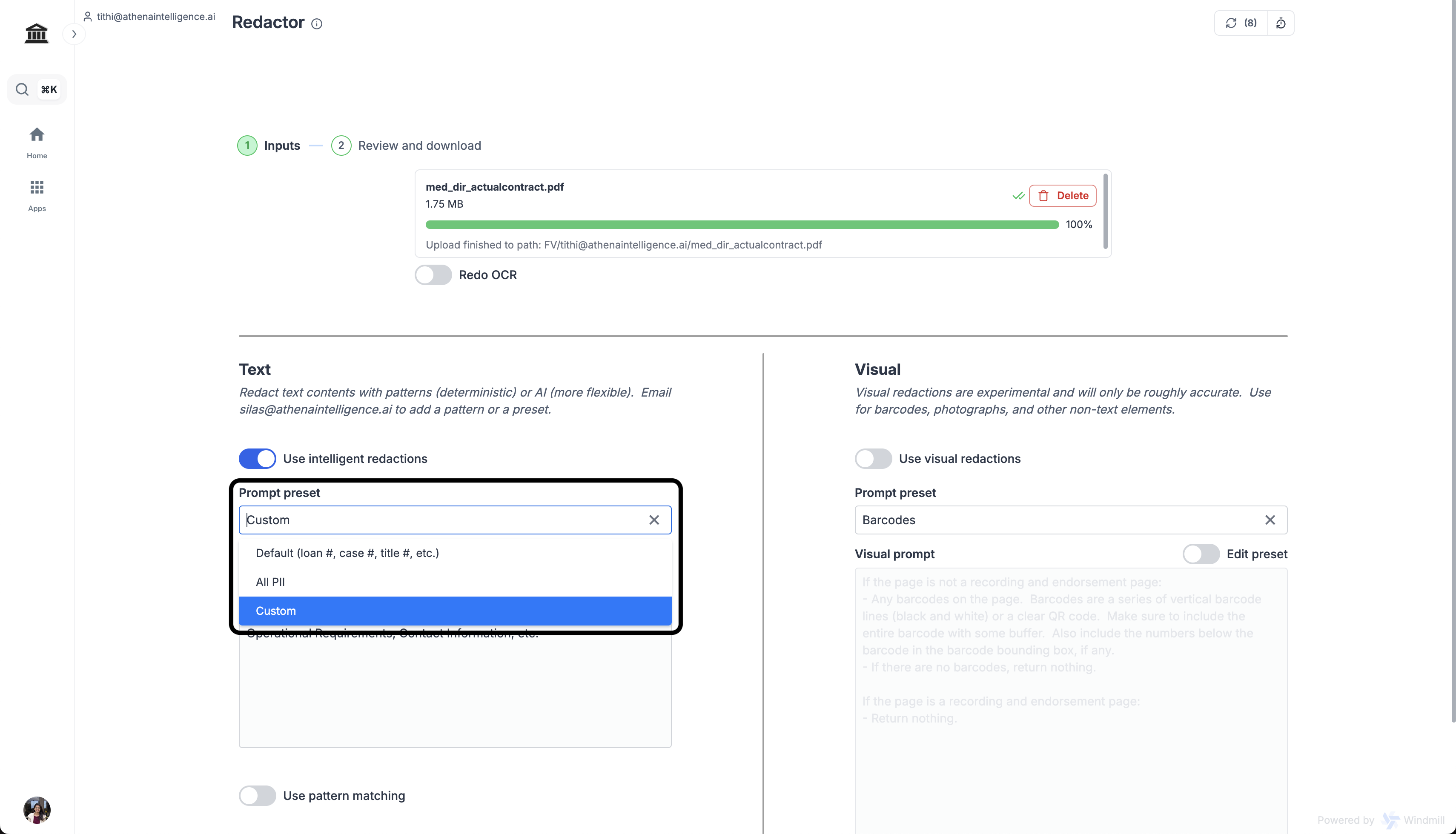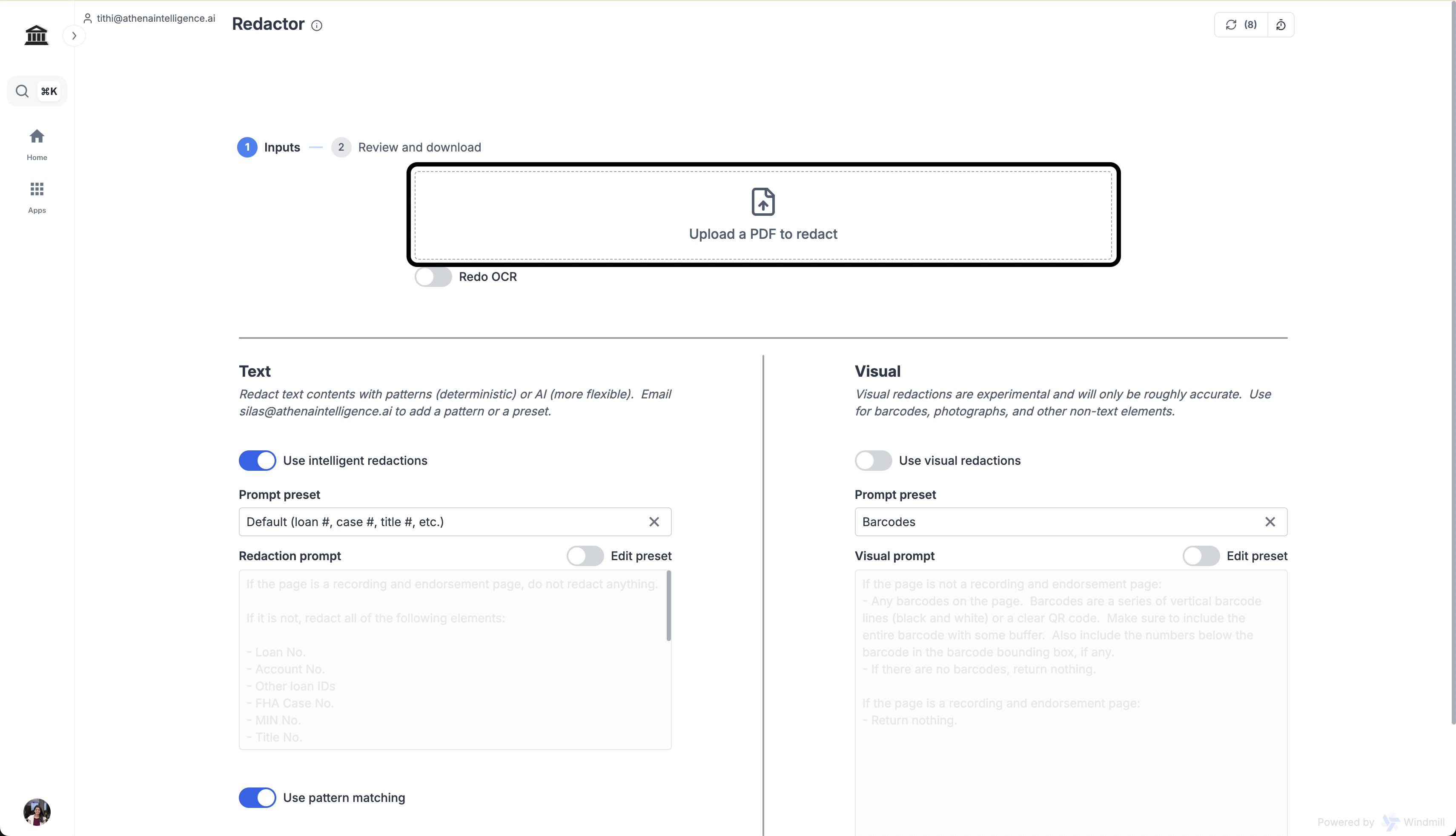 Upload the PDF you wish to redact in Upload a PDF to redact.