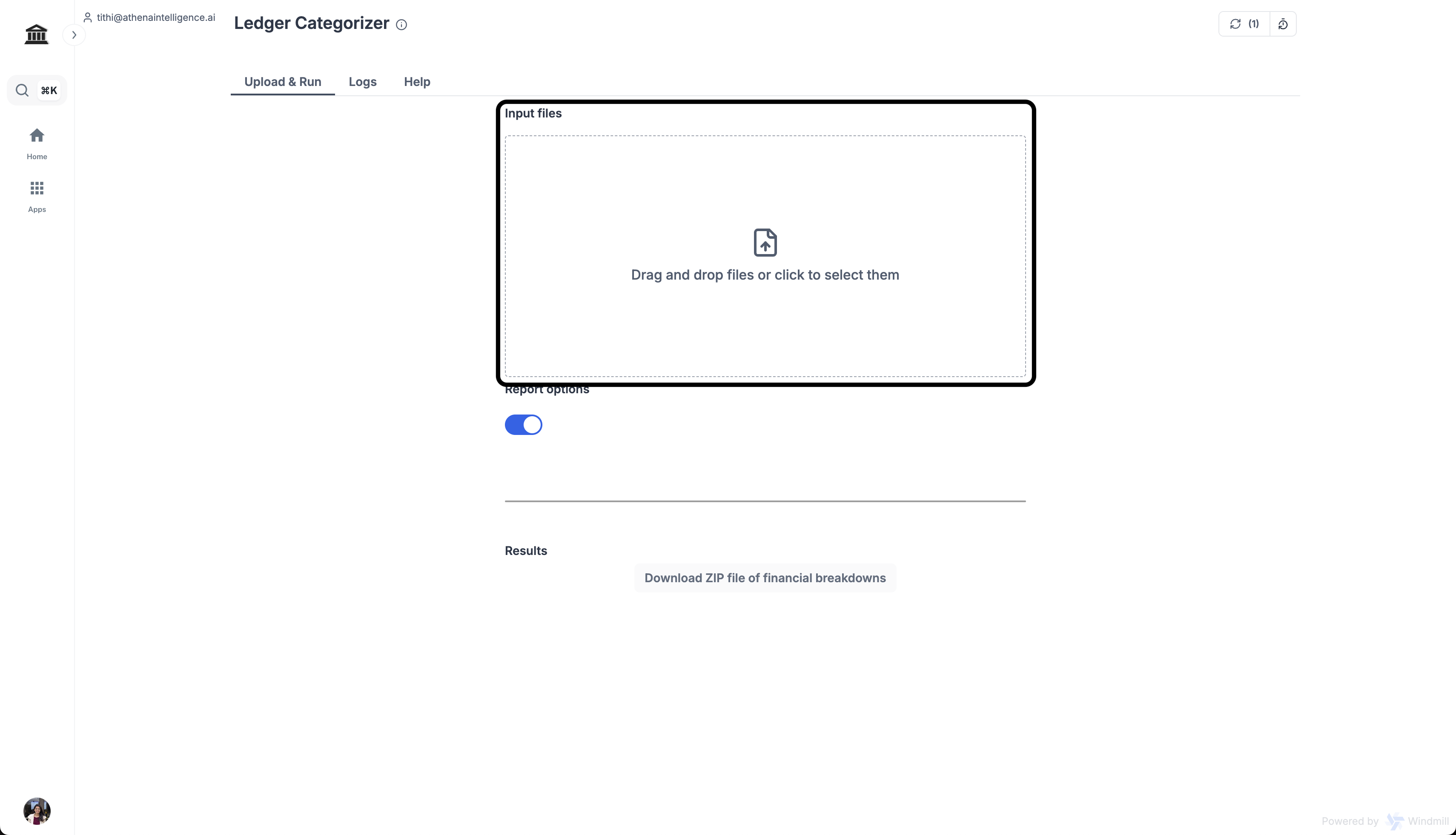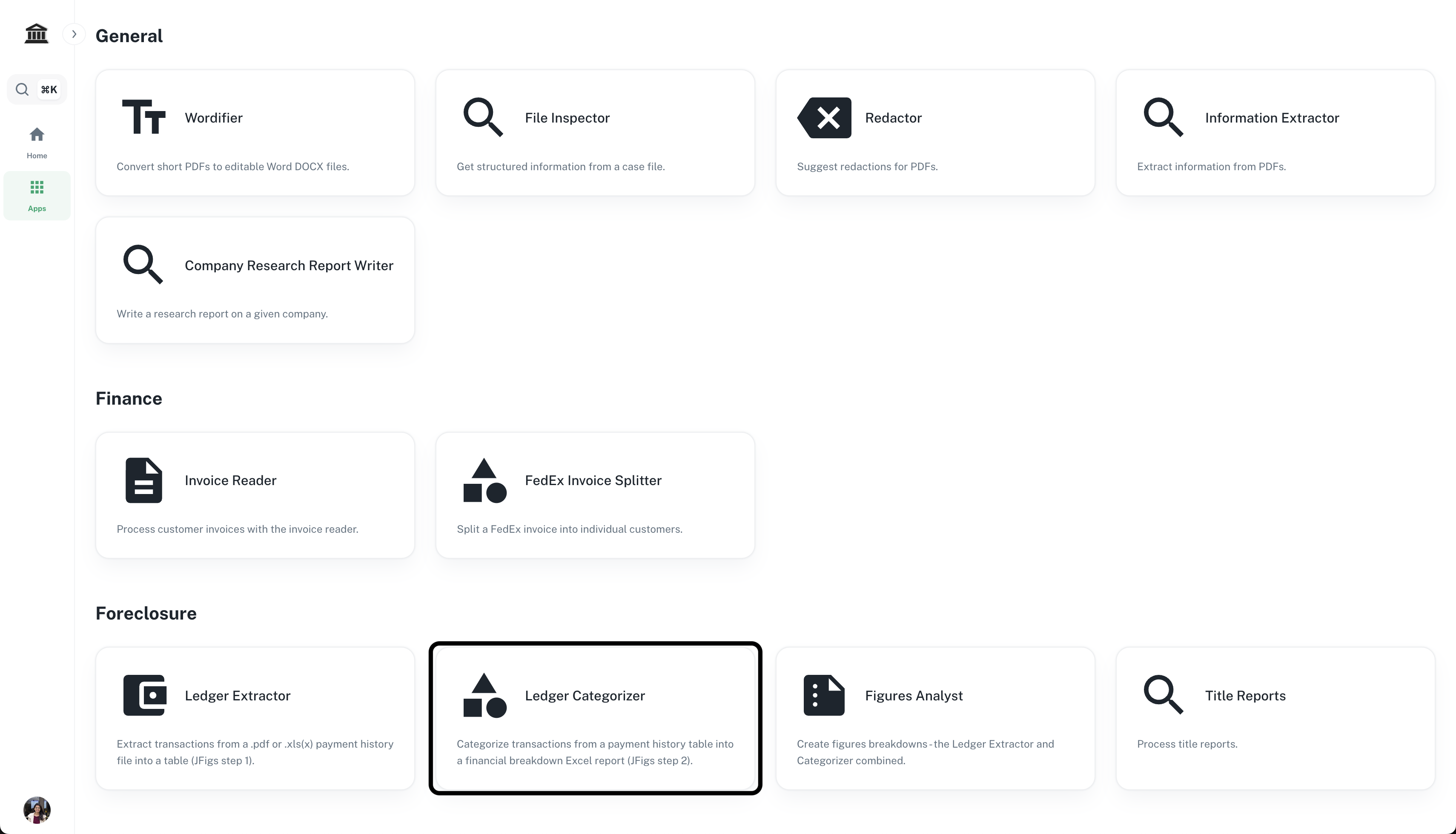 Navigate to Apps -> Ledger Categorizer from the applications sidebar on the left.