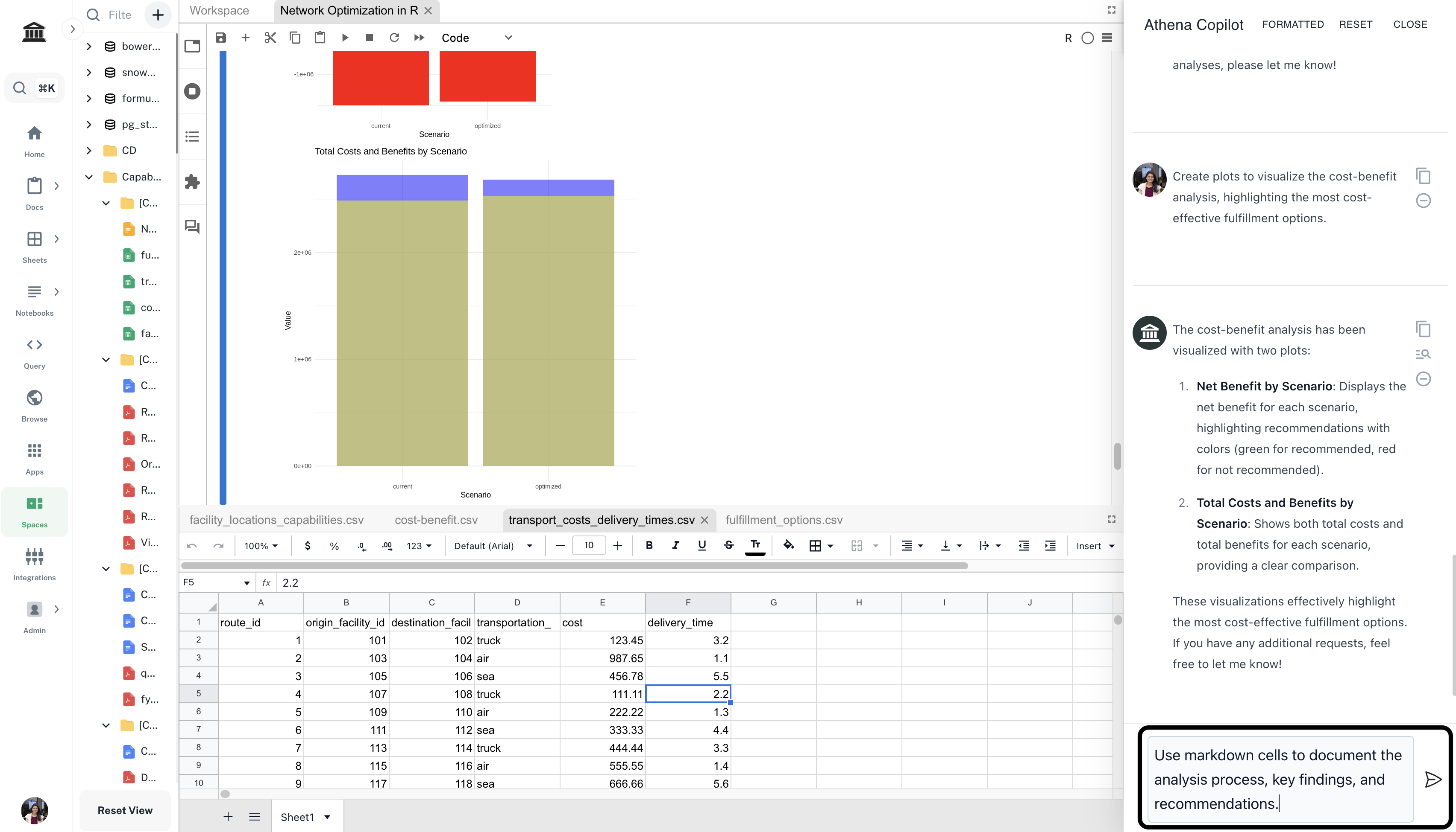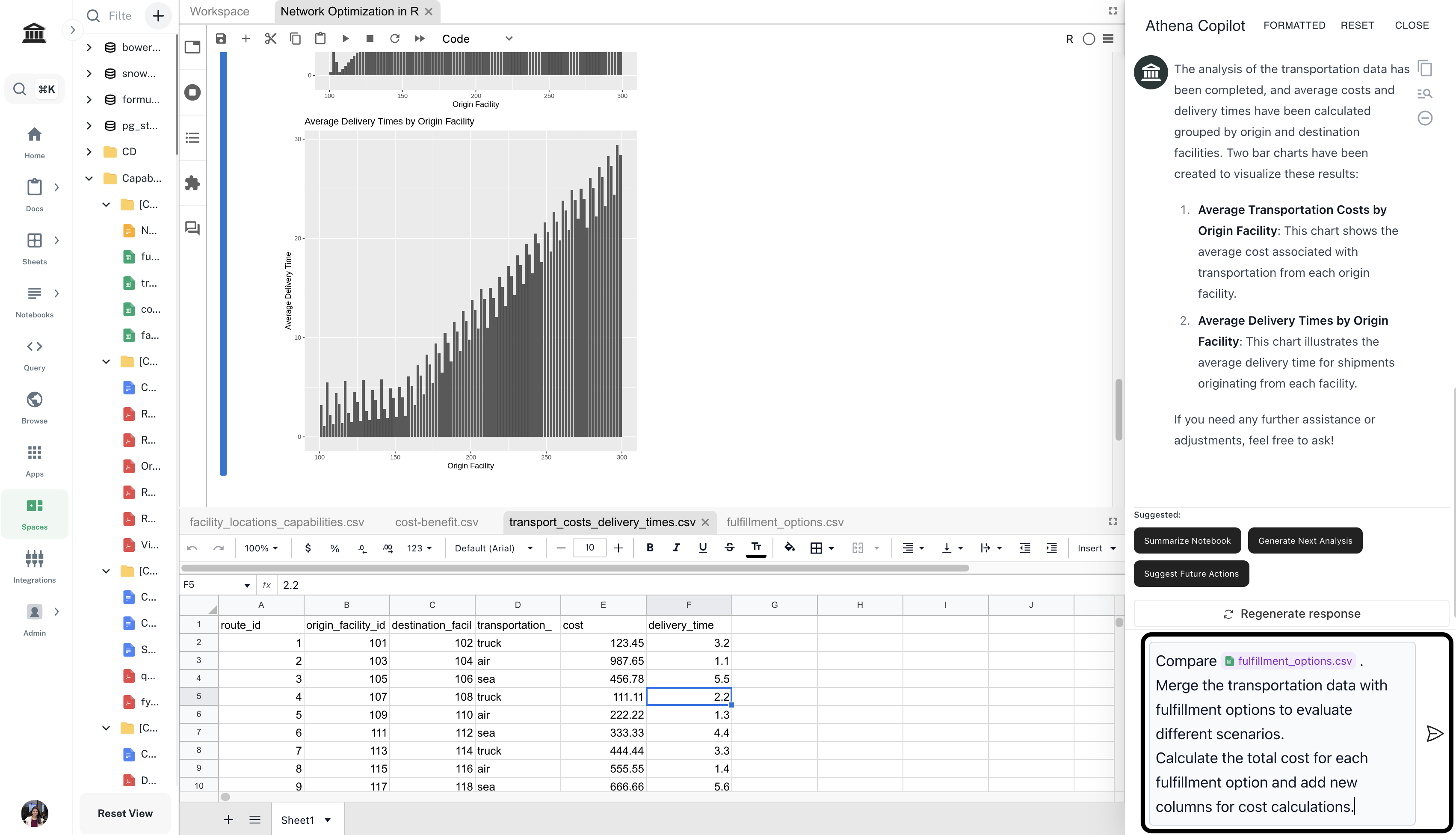 your-transport-costs-delivery-times-dataset by selecting the corresponding dataset from the Athena Assets dropdown.