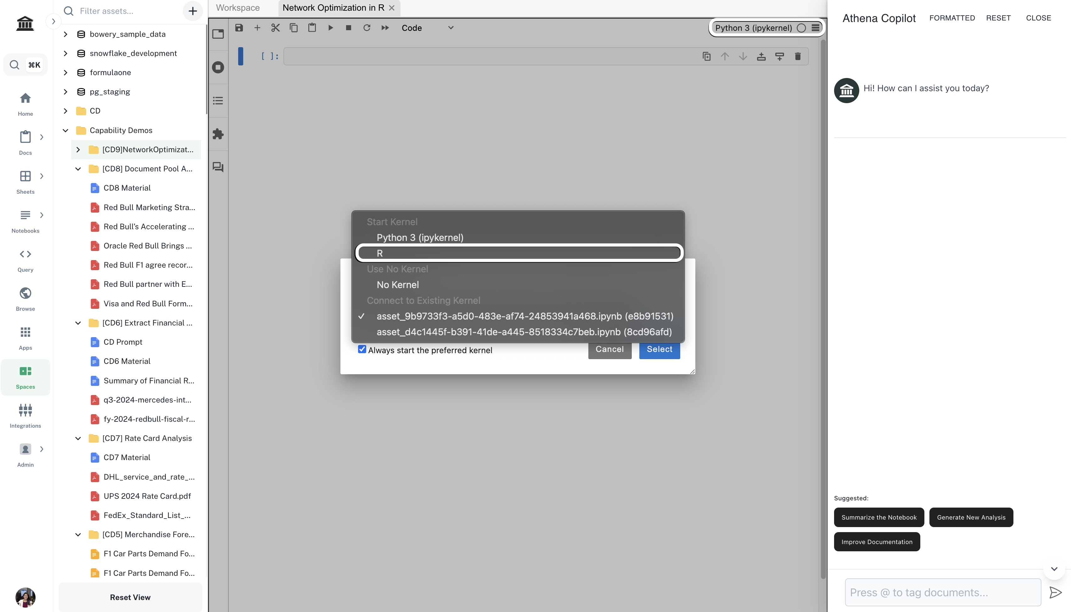 In the Notebook, click on Python 3 (ipykernel) and select R from the options. Click on Select.
