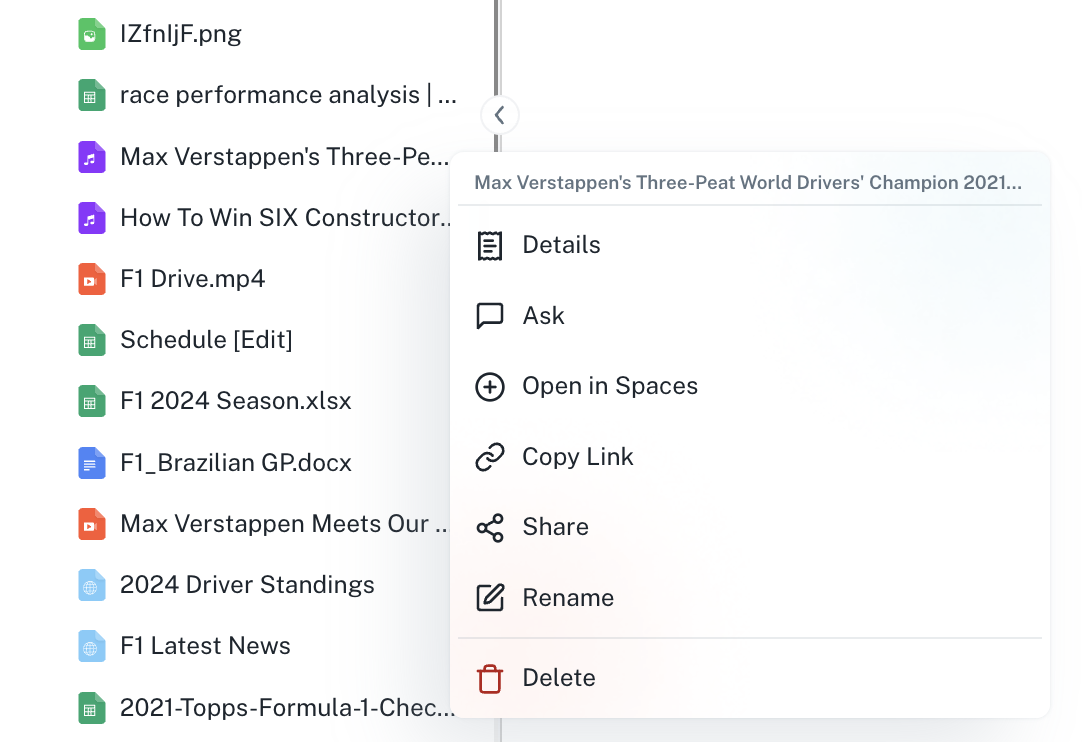 Right-click on any asset in Spaces to access a comprehensive context menu with powerful operations. This menu provides quick access to common actions without interrupting your workflow.