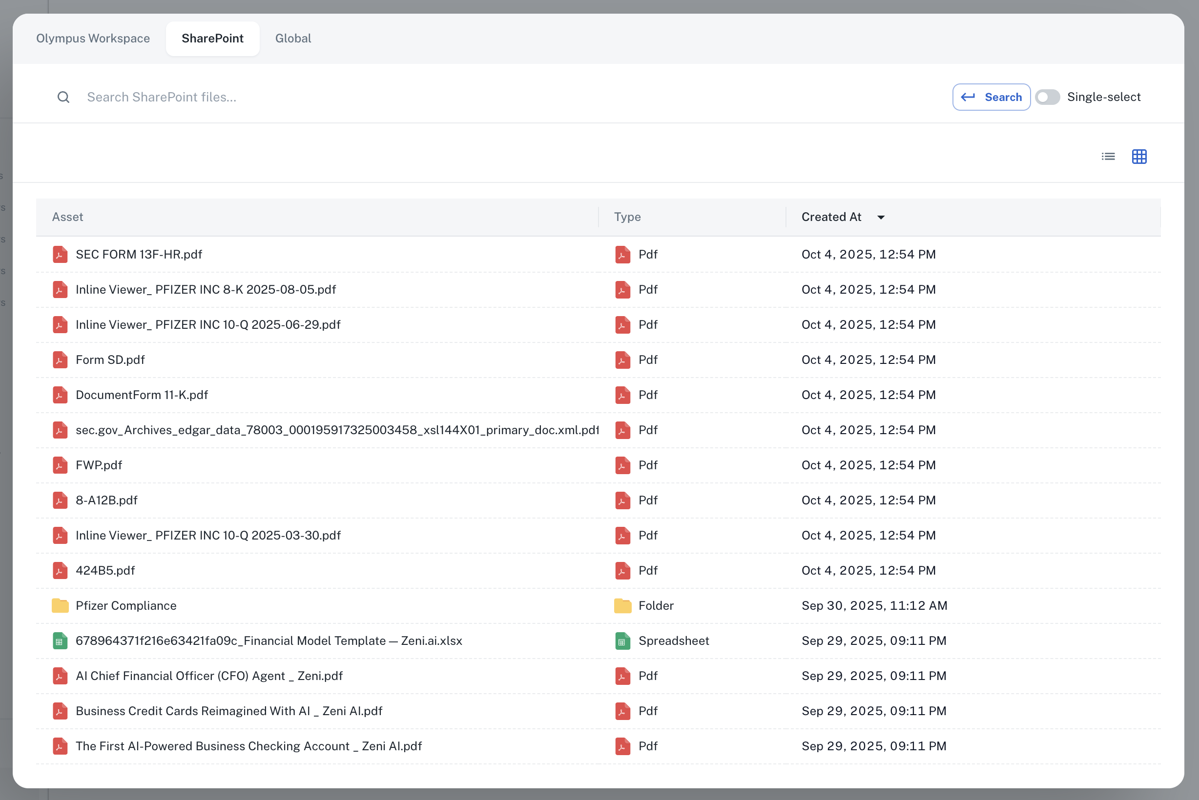 Athena supports Live Assets from multiple enterprise platforms, enabling unified access to your organization’s distributed knowledge:SharePoint