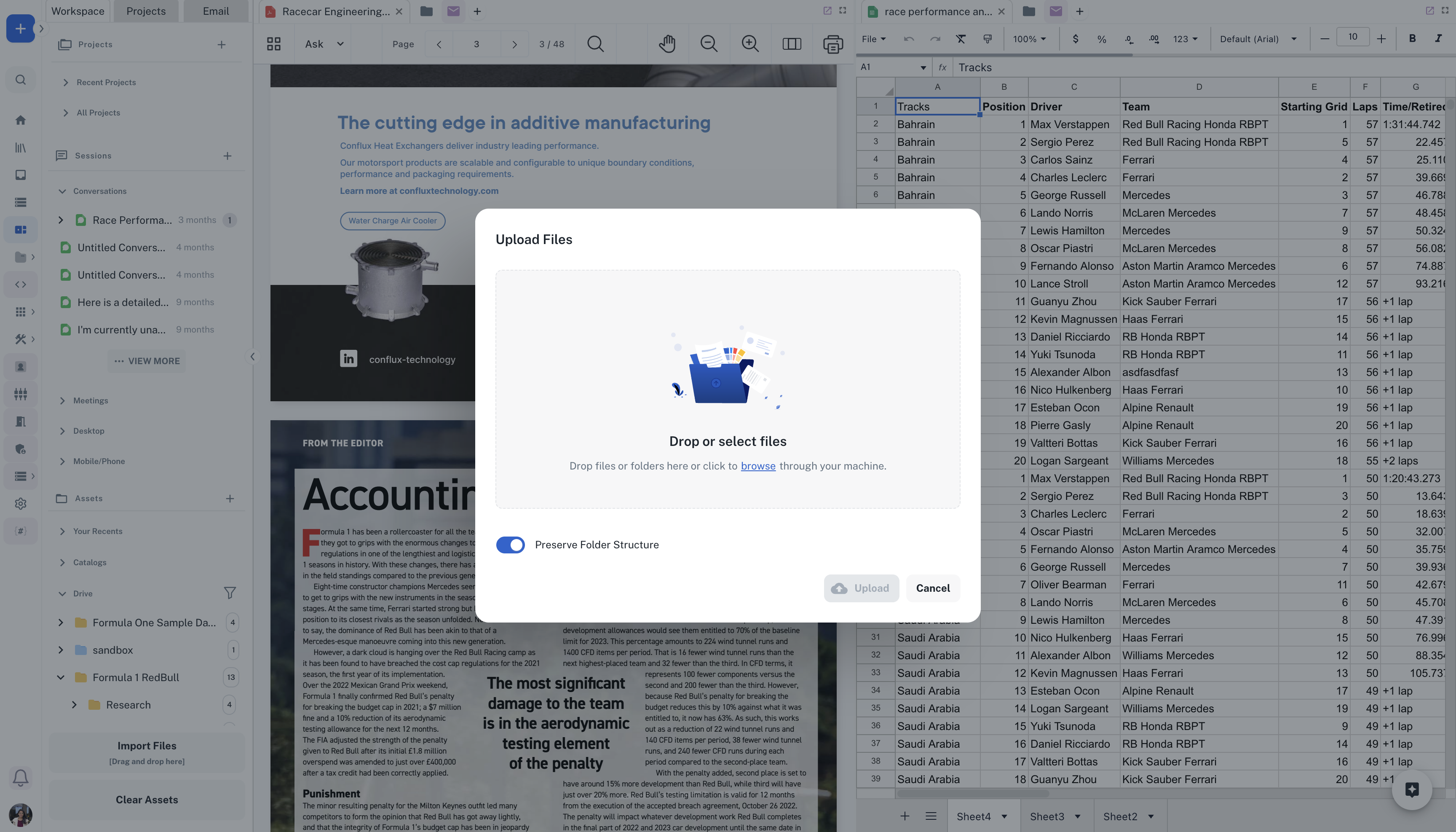 Easily add your data to Athena by importing various assets including PDFs, documents, spreadsheets (Excel/CSV), and media files (video/audio), etc. through our simple upload interface.Athena supports the following assets: