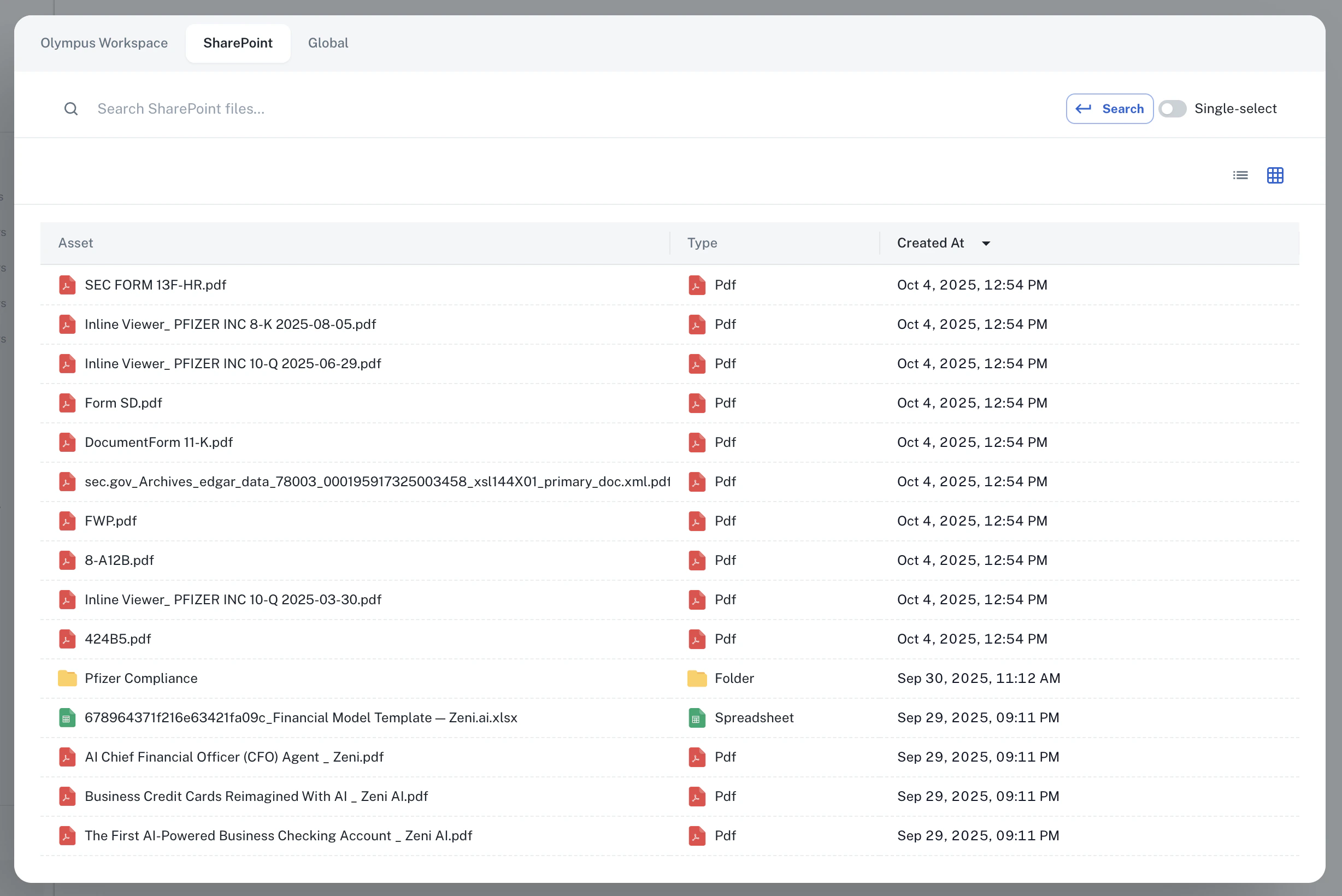 Once your SharePoint integration is complete, you can access your SharePoint content directly within Athena:Accessing SharePoint Files