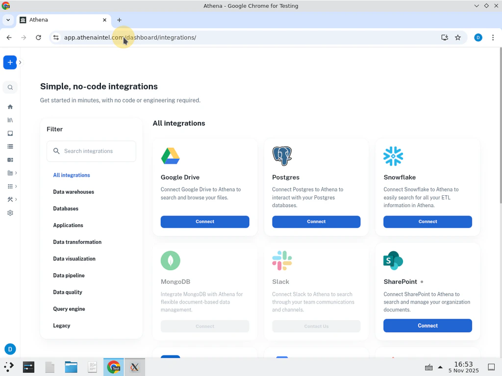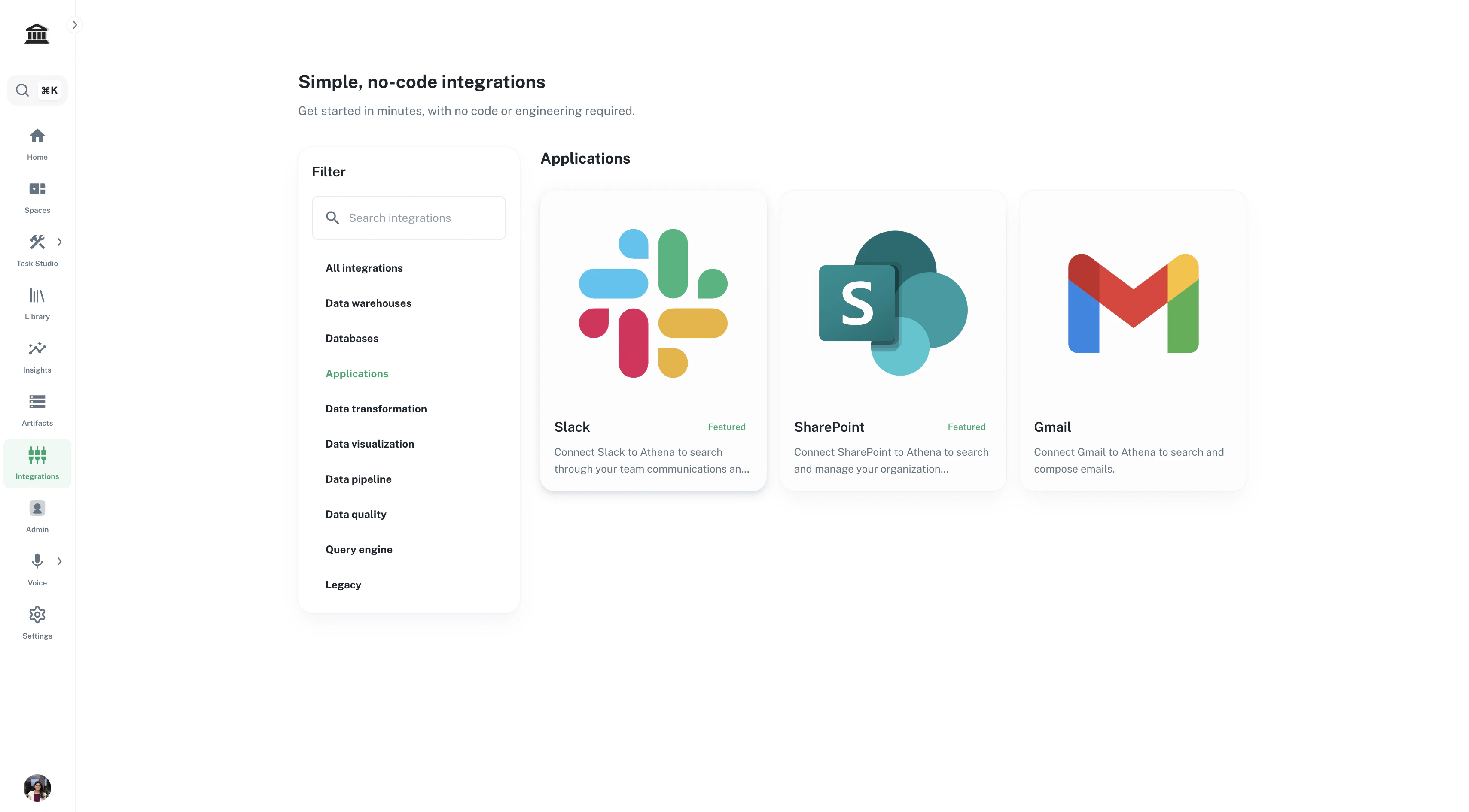 Now that you’ve created the Azure App Registration, you can connect your SharePoint sites to Athena.Navigate to Integrations