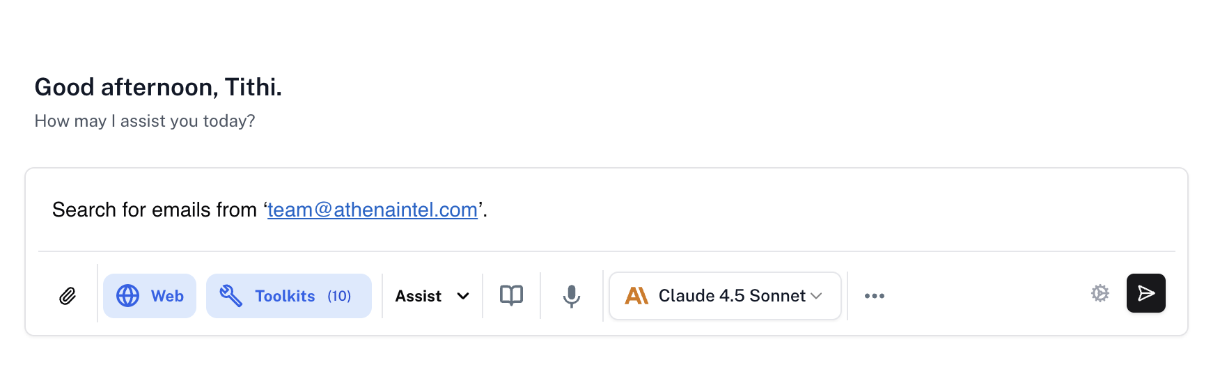 Leverage Athena’s AI capabilities to draft professional emails, suggest responses to incoming messages, and refine your writing for tone and clarity. Athena can help you compose emails that reference documents, data, or previous conversations, ensuring your communications are comprehensive and well-informed.Email-Triggered Workflows