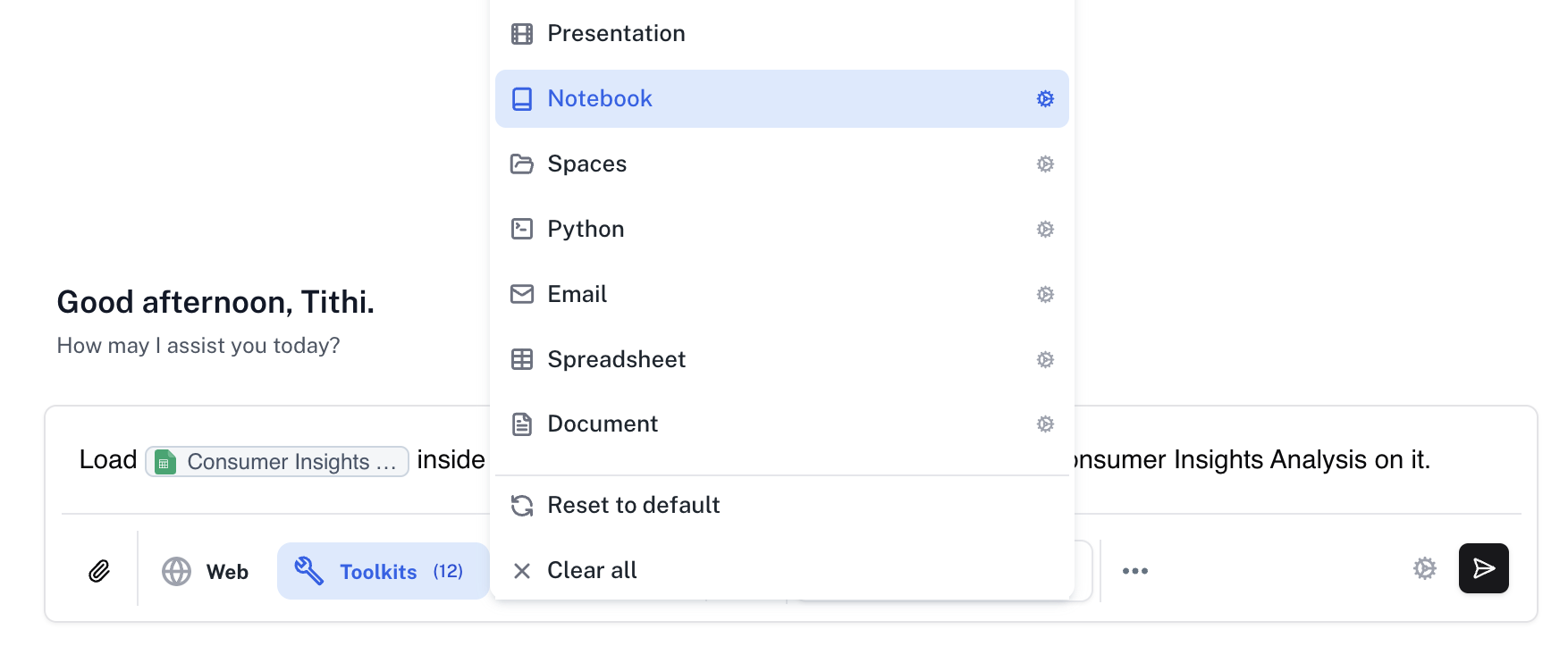 Effortlessly manage your datasets by uploading Excel or CSV files as Athena assets and loading them into Athena Notebooks with a single command via the chat sidebar.