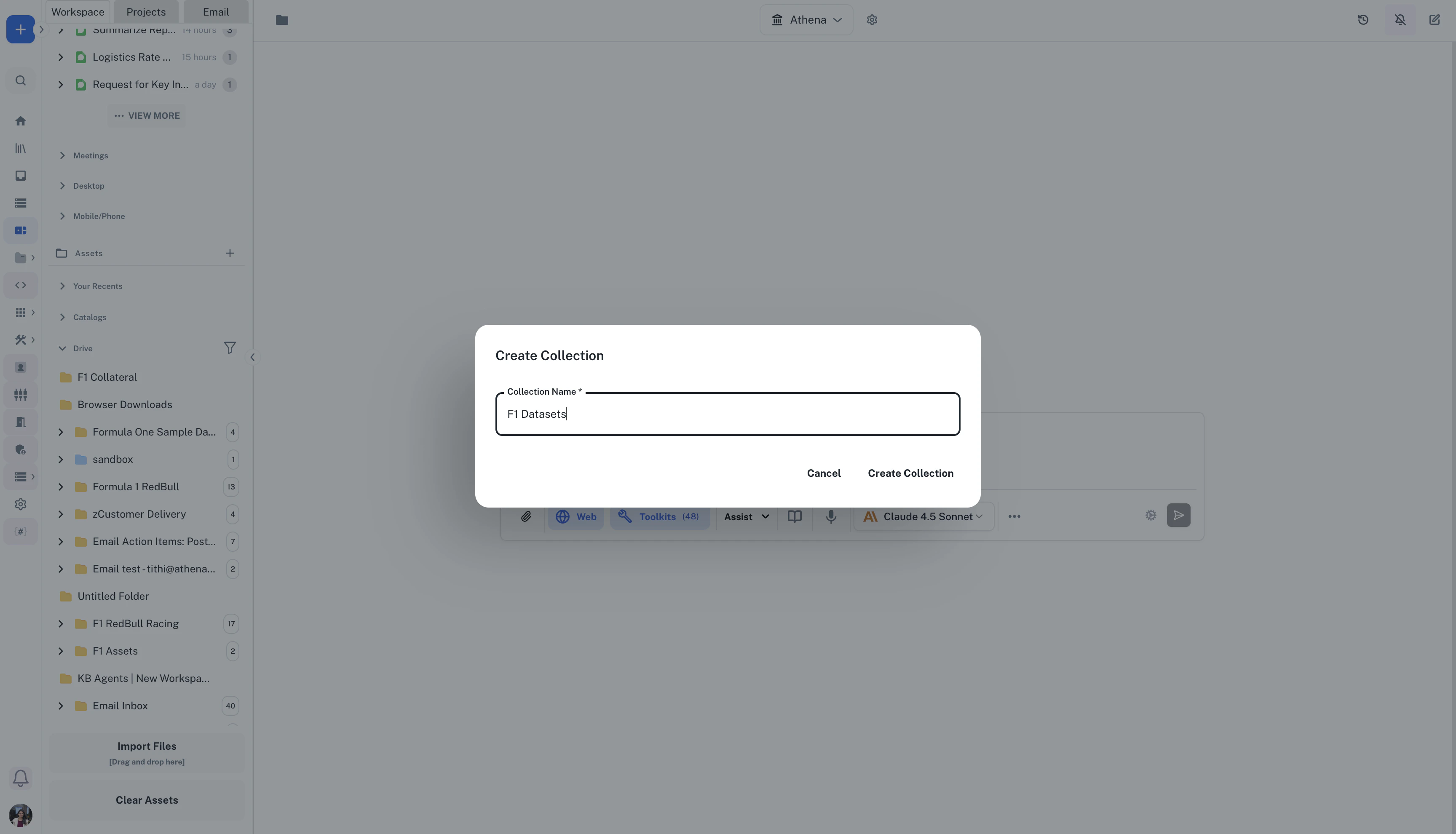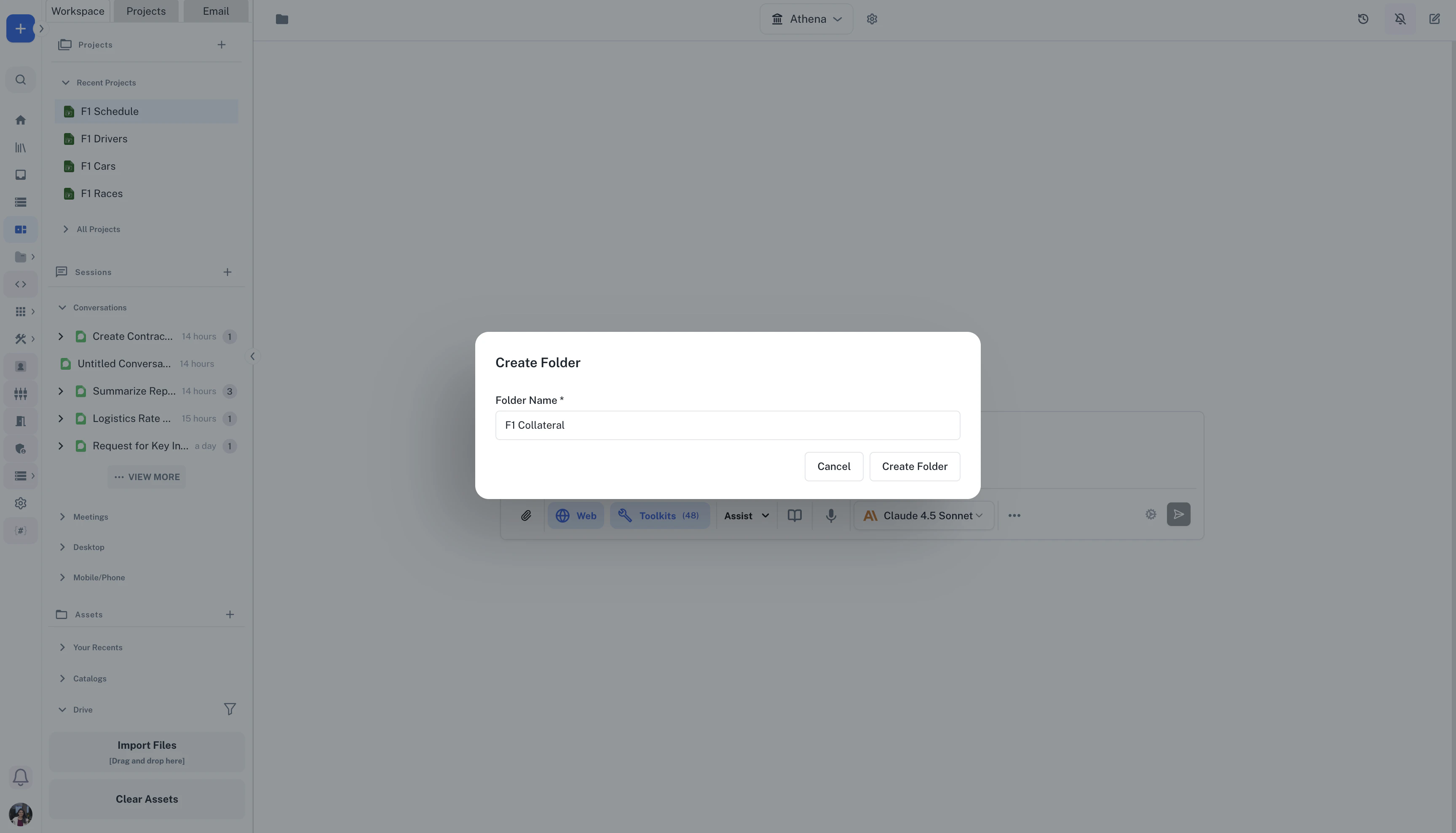 Folders in Athena provide a hierarchical structure for organizing your assets, similar to traditional file systems. They support parent-child relationships, allowing you to create nested folder structures that match your organizational needs.