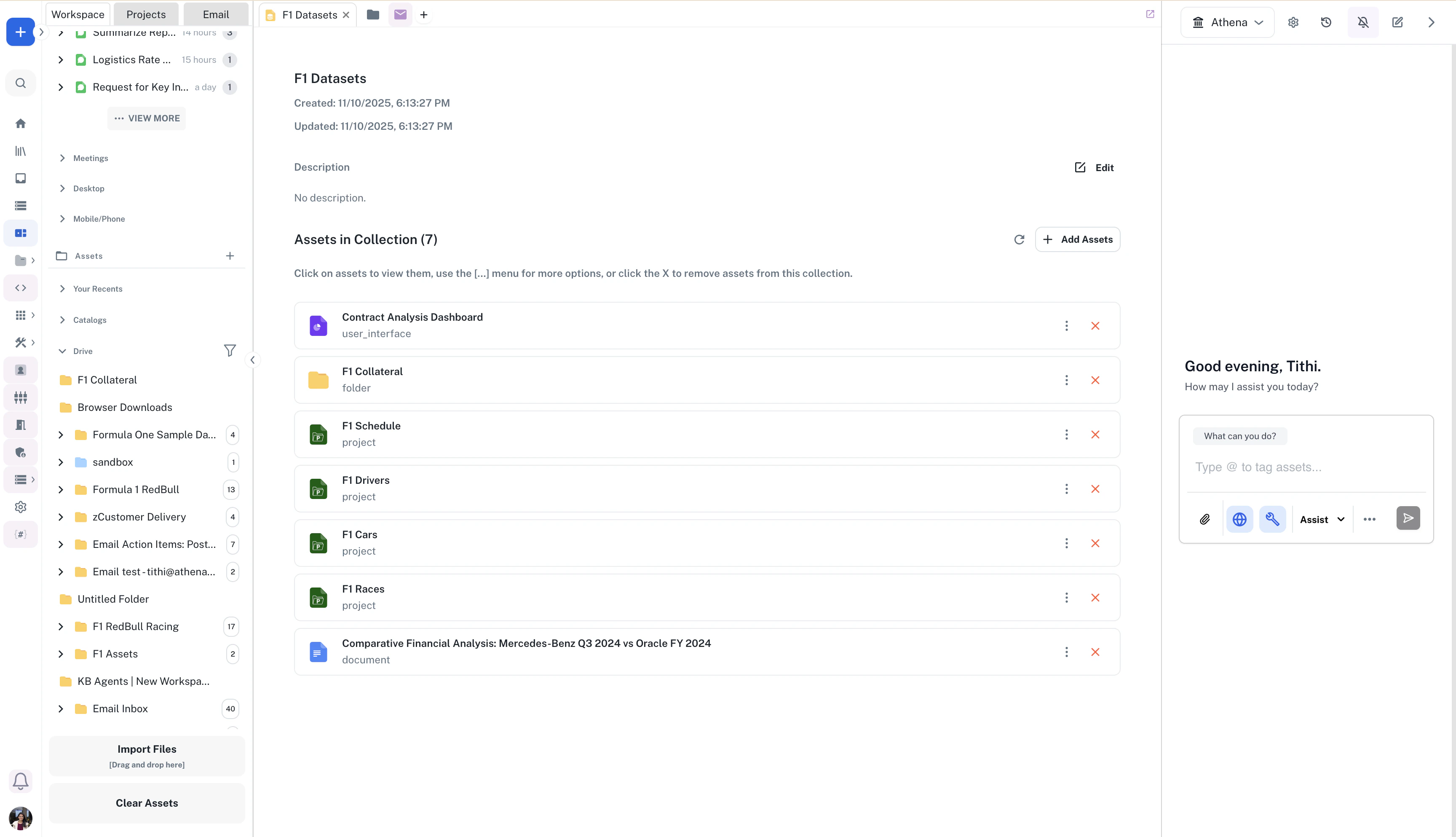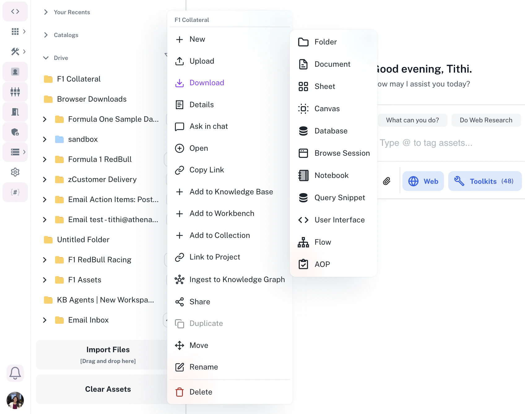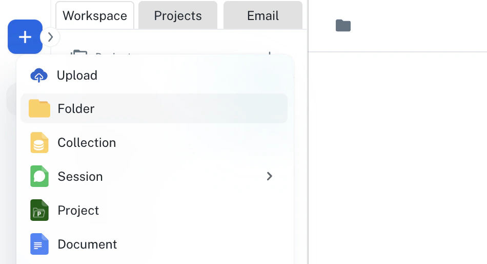 Folders can contain:- Assets: Documents, sheets, notebooks, and other file types