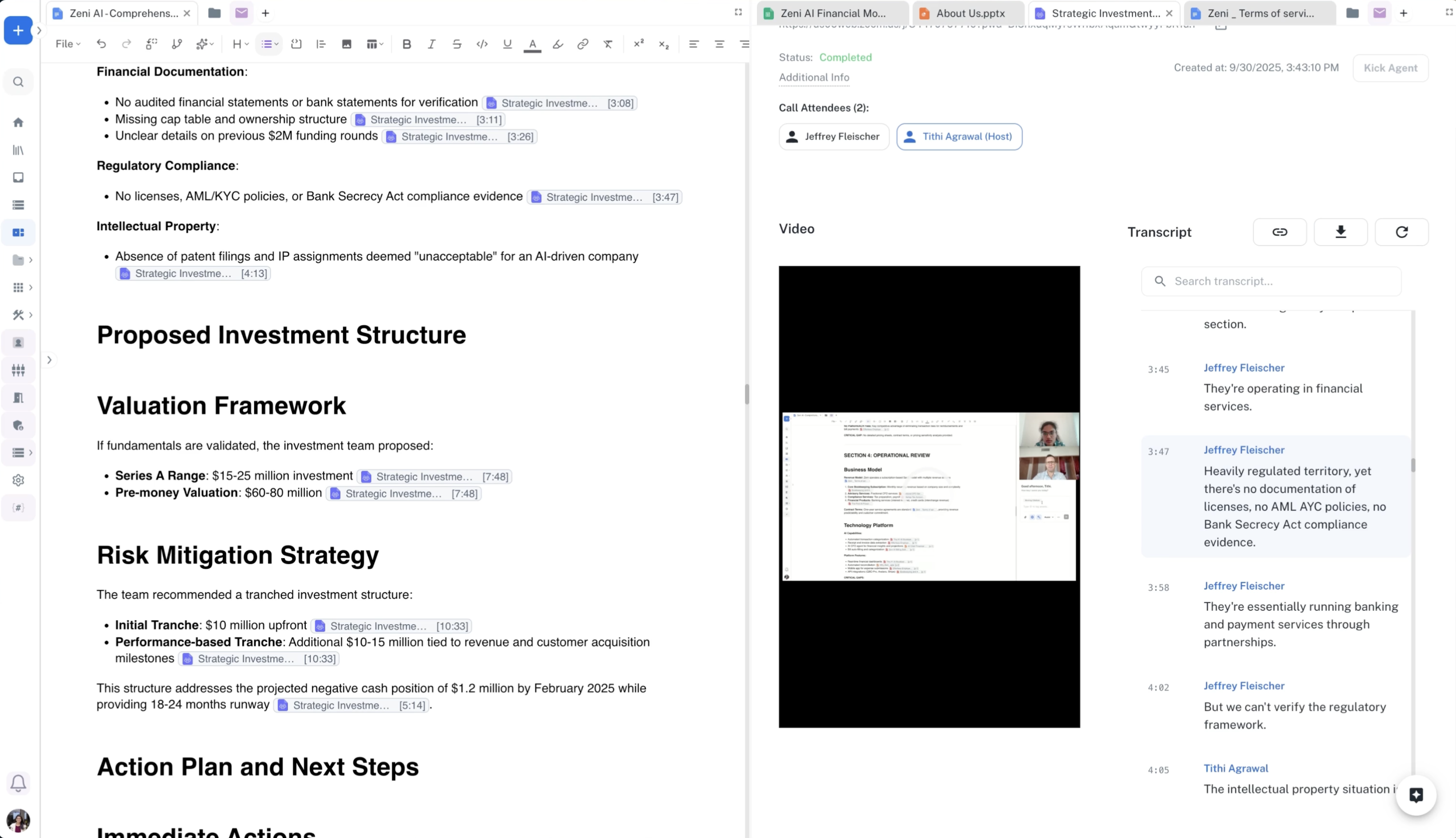 When transcribing meetings, citations reference the exact timestamps: