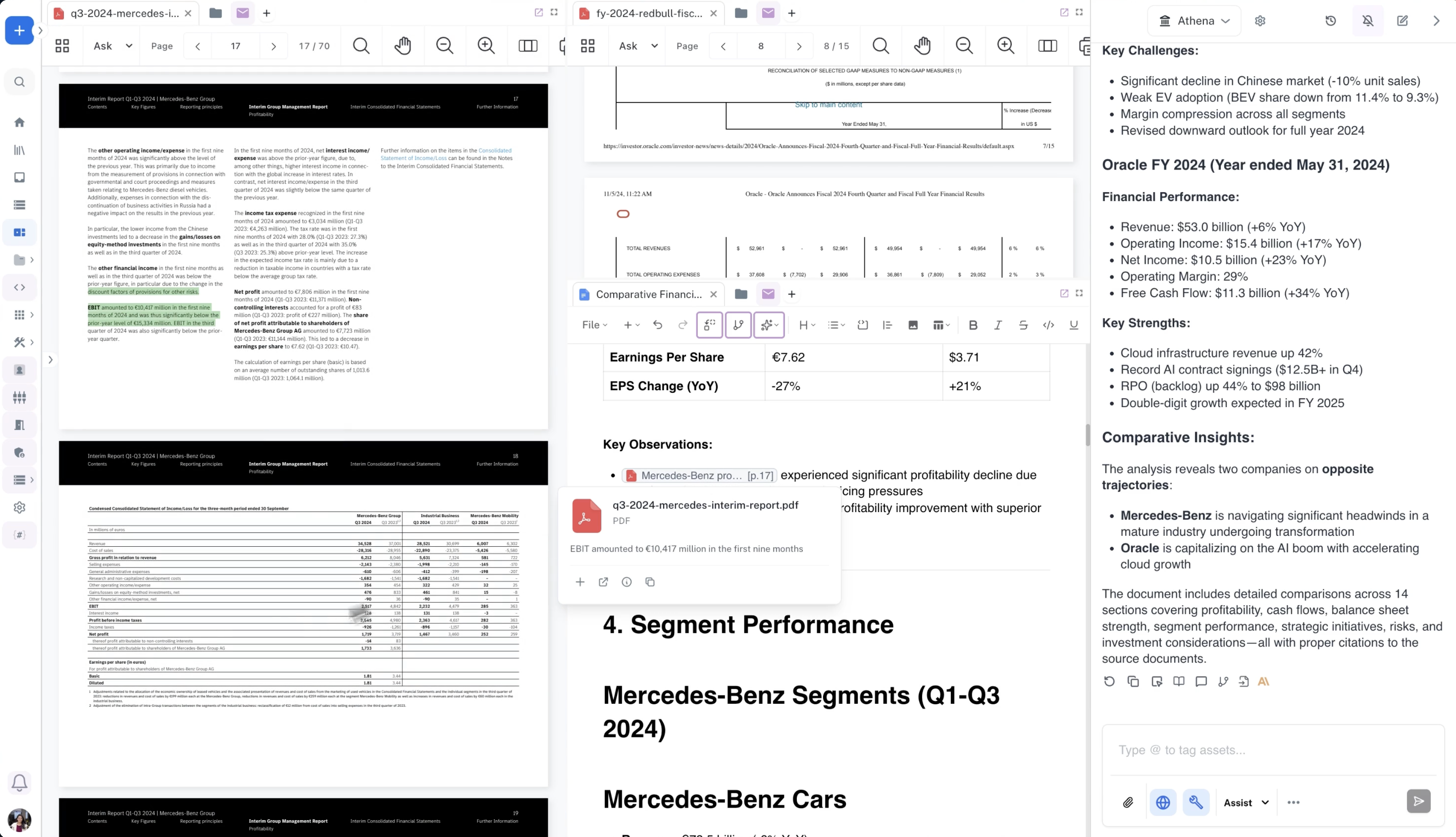 When Athena summarizes a document, every key point includes citations to the specific pages or sections: