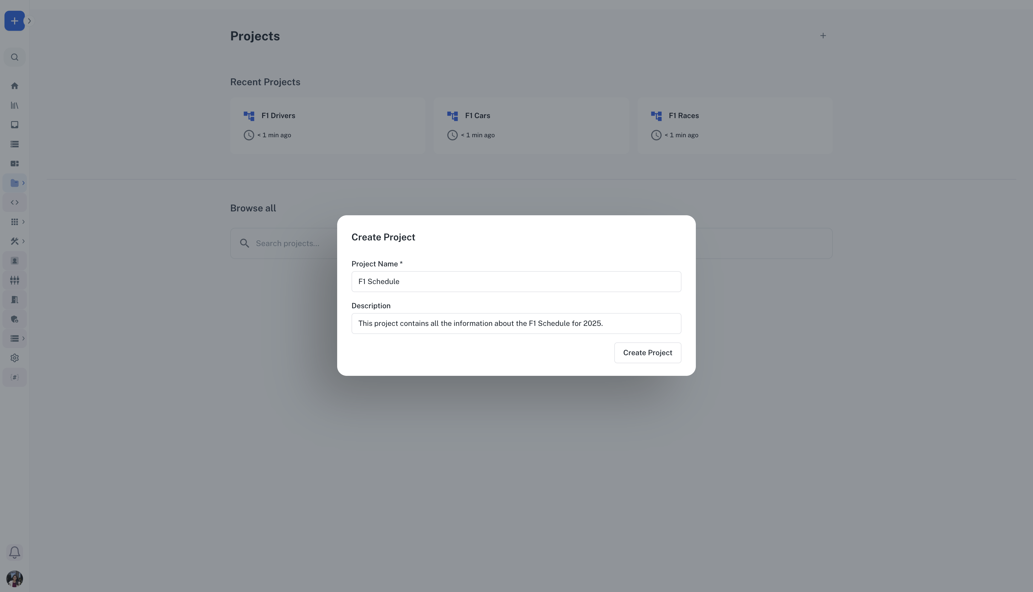 - Click “Create Project”: Use the create button to start a new project and provide a descriptive name and optional description