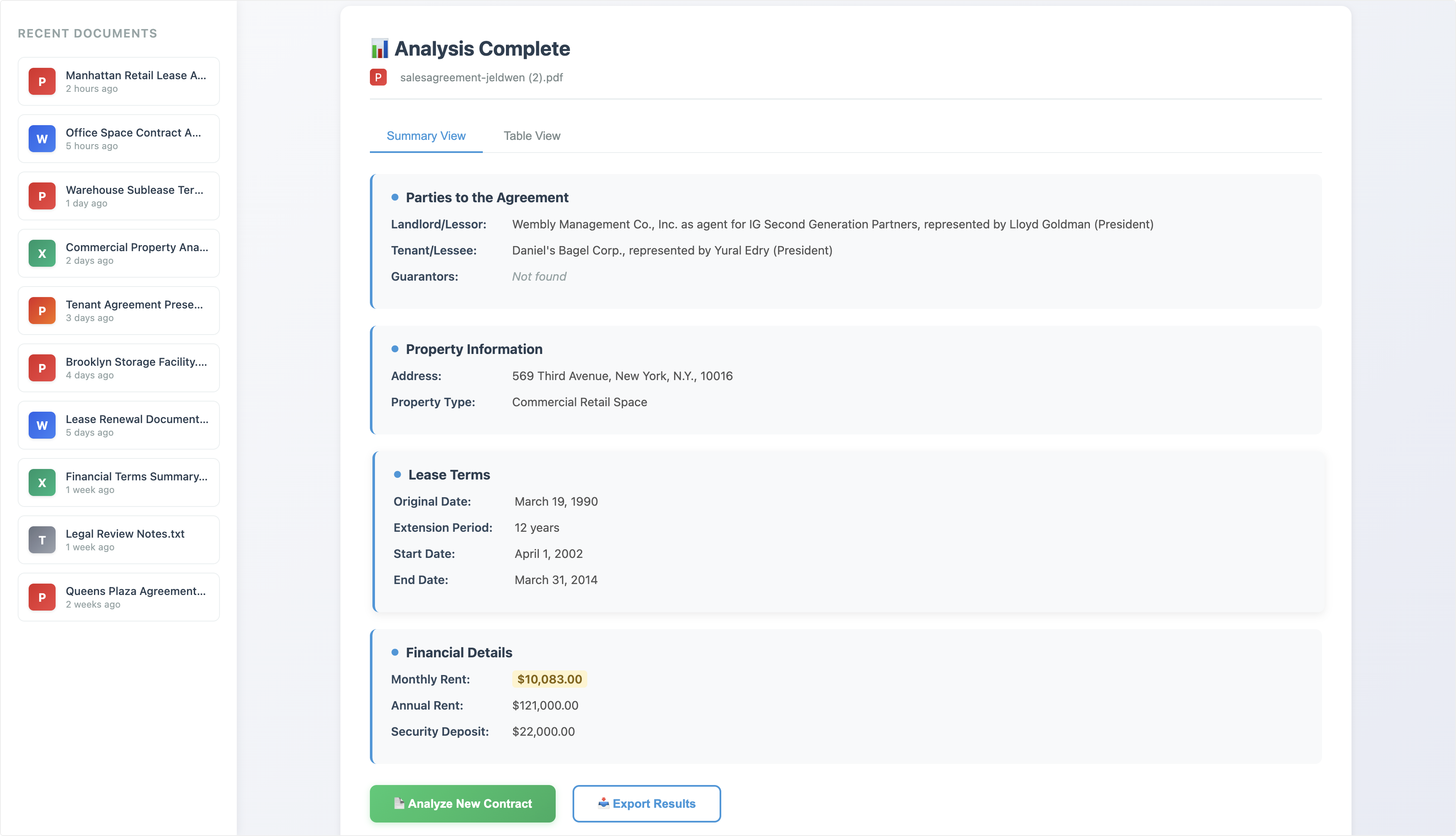 Once created, the user interface asset appears in your workspace. These interfaces support versioning, allowing you to safely return to previous versions if needed. Athena generates an independent shareable link that enables users without Athena access to view and interact with the dashboard.Users can upload contract documents through the interface and execute AOPs in the backend to see analysis results displayed directly within the interface. This creates a seamless experience for contract review workflows.