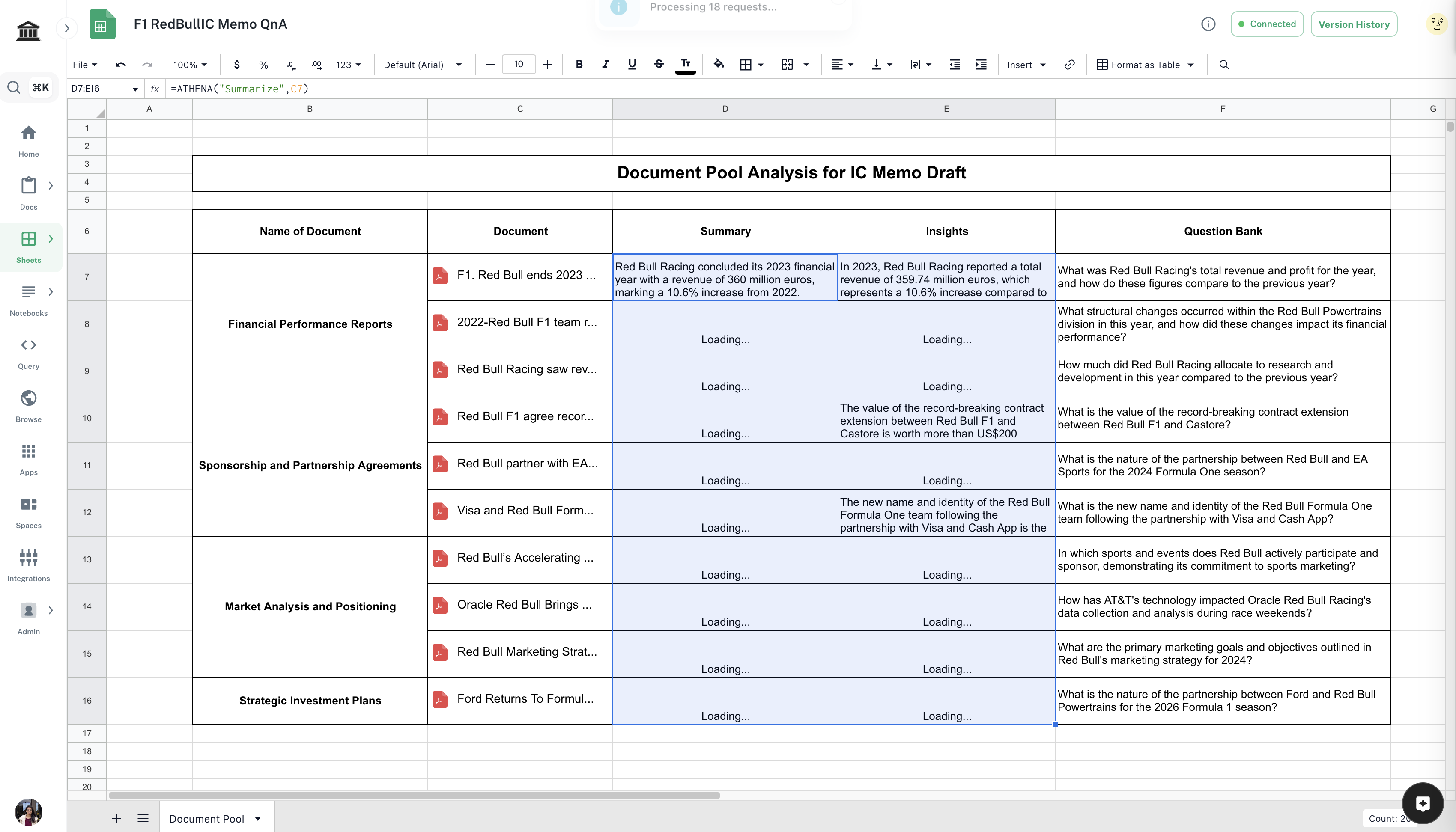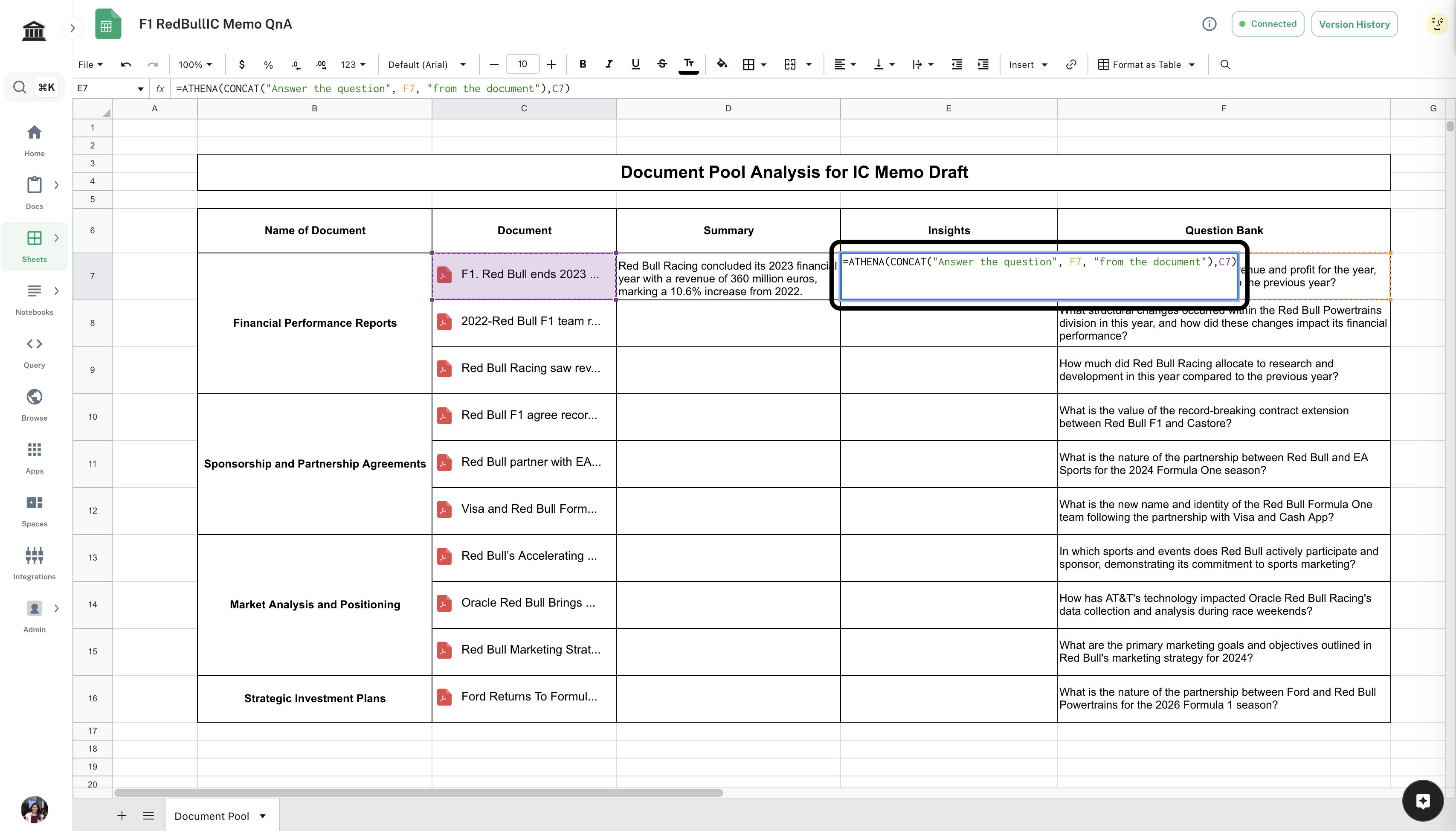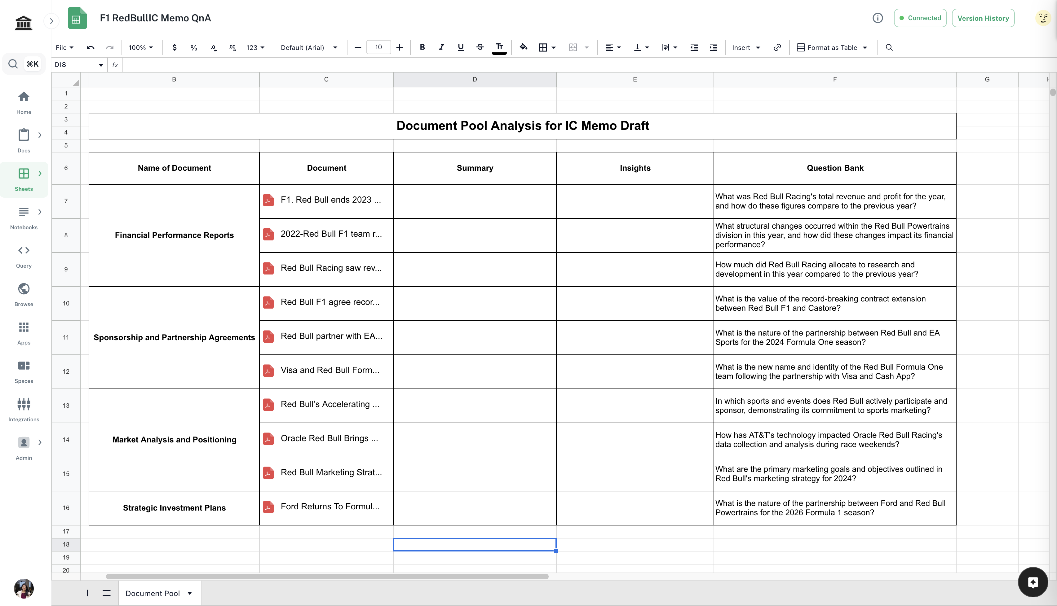 Open the Document Pool Analysis Template. Drag and drop the documents you wish to analyze in the corresponding cells. Edit the question bank if required.