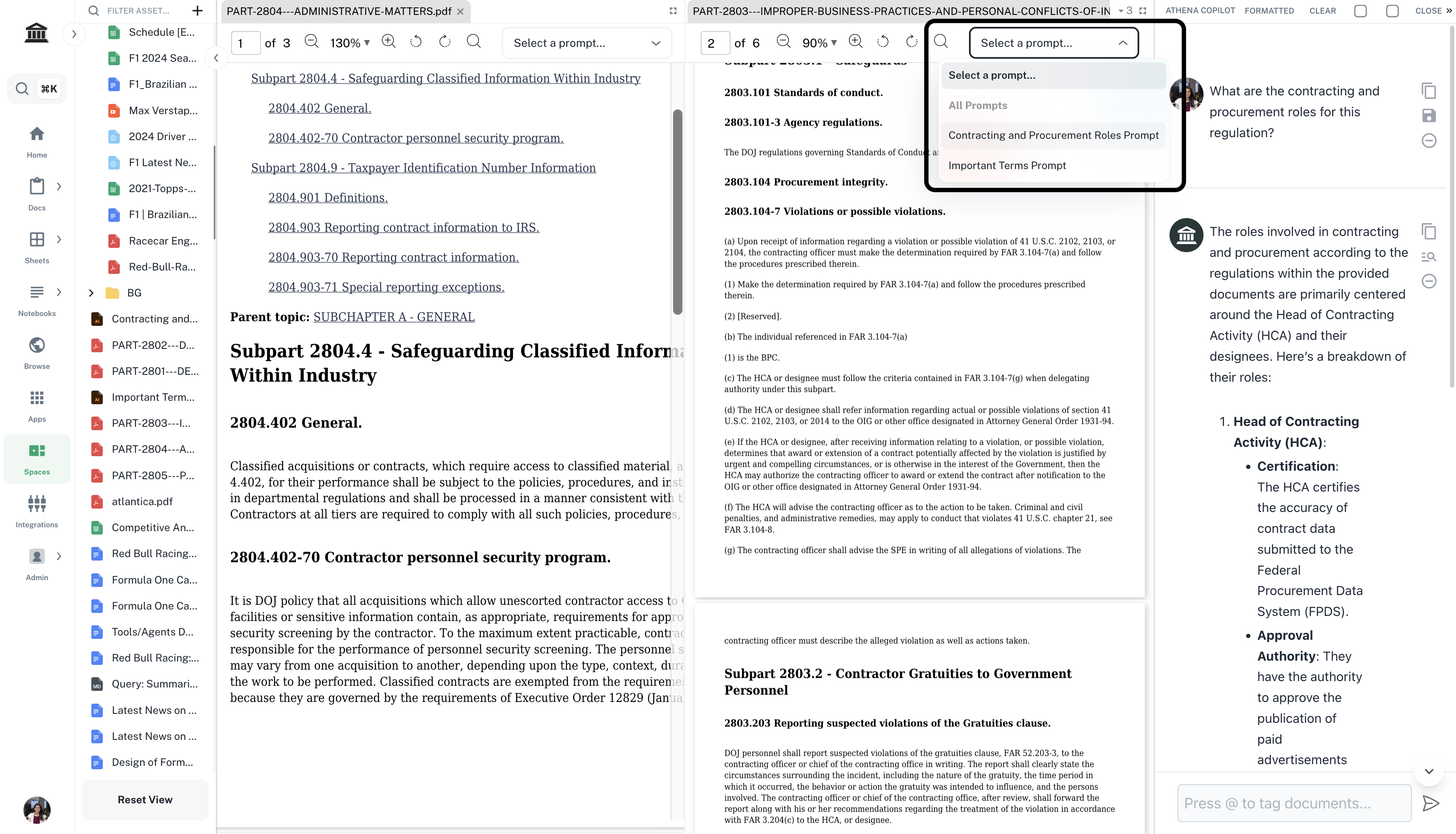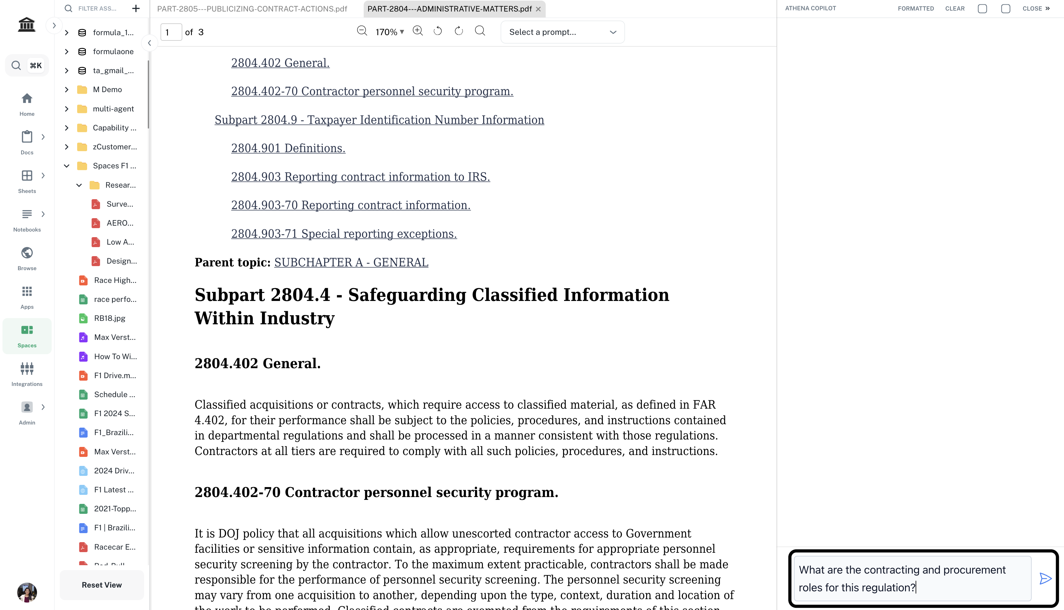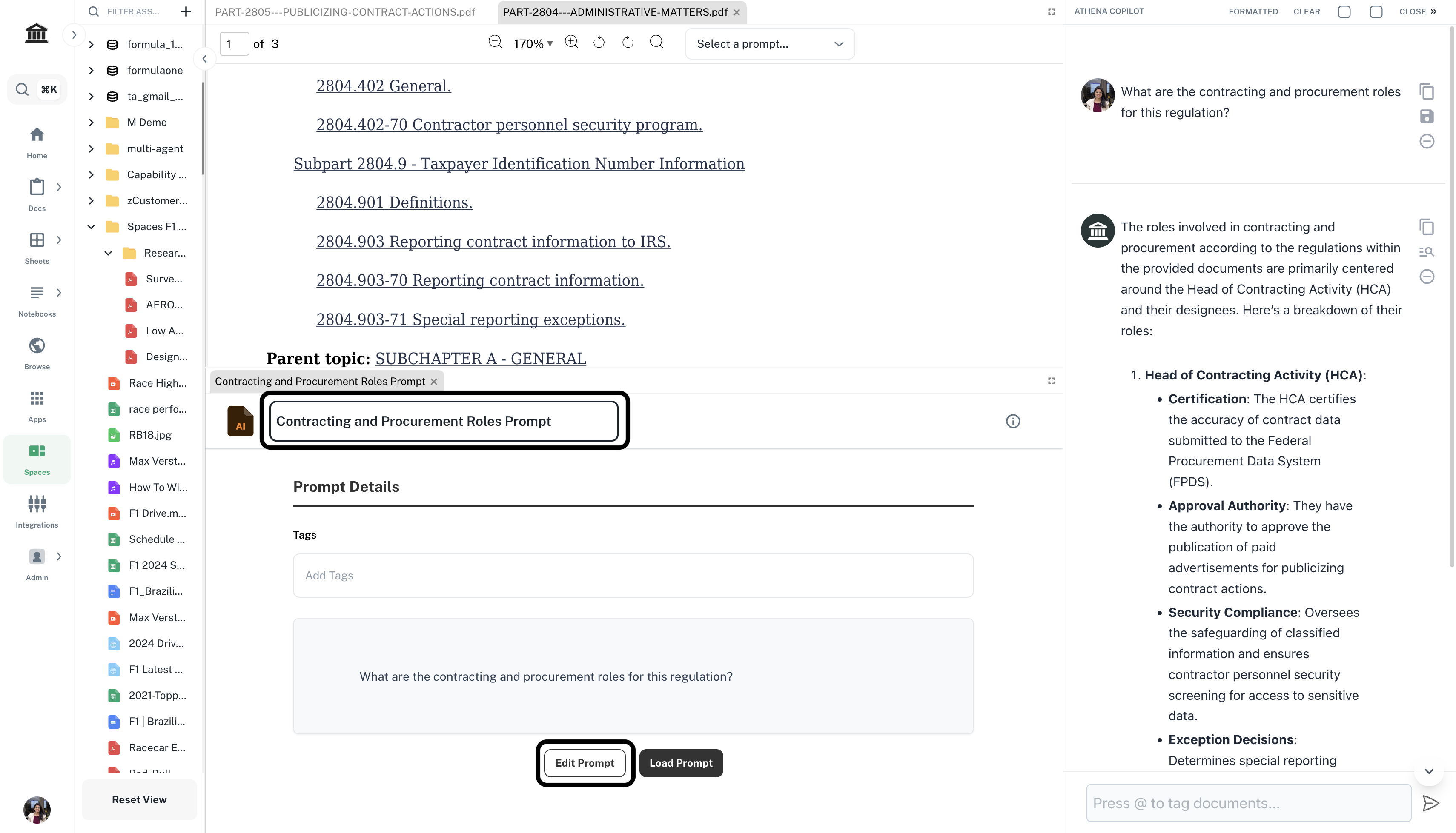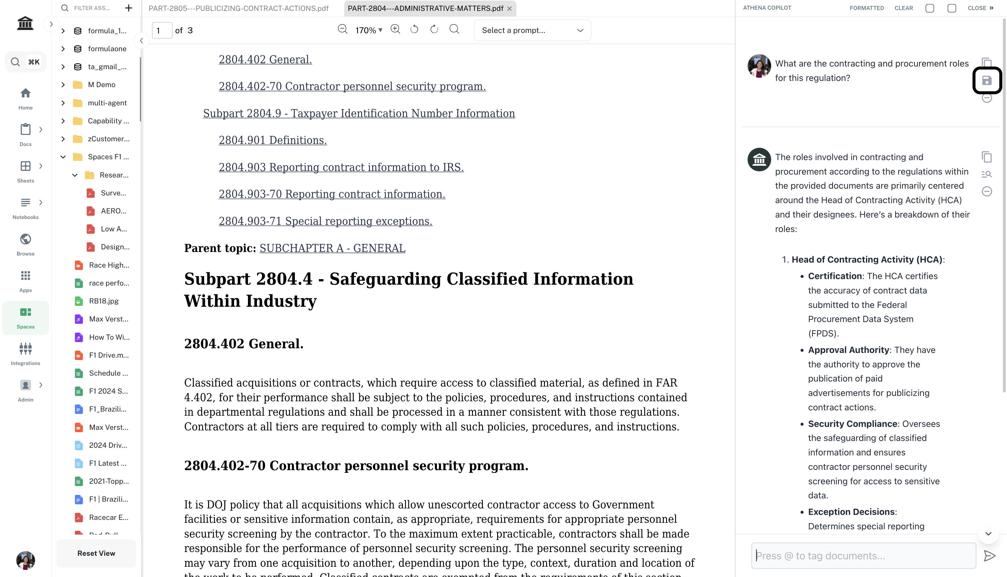 Drag and drop the acquisition regulation onto your Space. In the right Chat sidebar, enter the following prompt and press Enter.